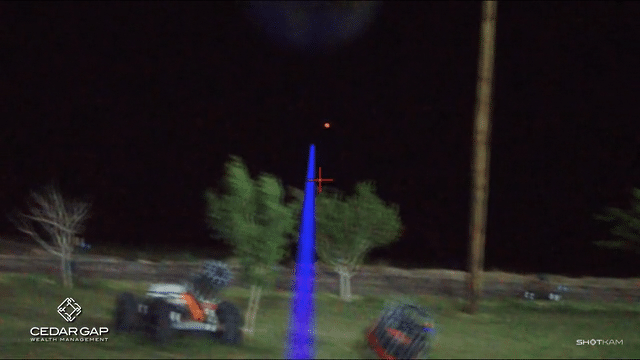 The laser is adjusted for a 50 yard breakpoint in these first 4 videos. We played around with the adjustment the next night and aligned it parallel with the barrels which over the shoulder makes it look perfect but you’ll see in the Shotkam that it’s slightly low.